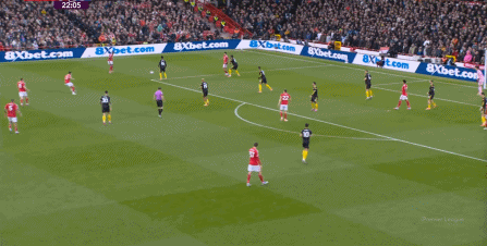 但从战术上来说,诺丁汉森林显然是准备得更充分的一方,因为姆贝乌莫和阿玛德-迪亚洛这一侧的进攻效率并不如此前三场那么亮眼,但诺丁汉森林通过中圈区域的争斗,所形成的进攻和射门相当频繁: