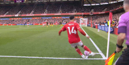 而且在上半场临近结束的时候,诺丁汉森林两次打进双后腰身侧,形成了两次非常危险的进攻机会: